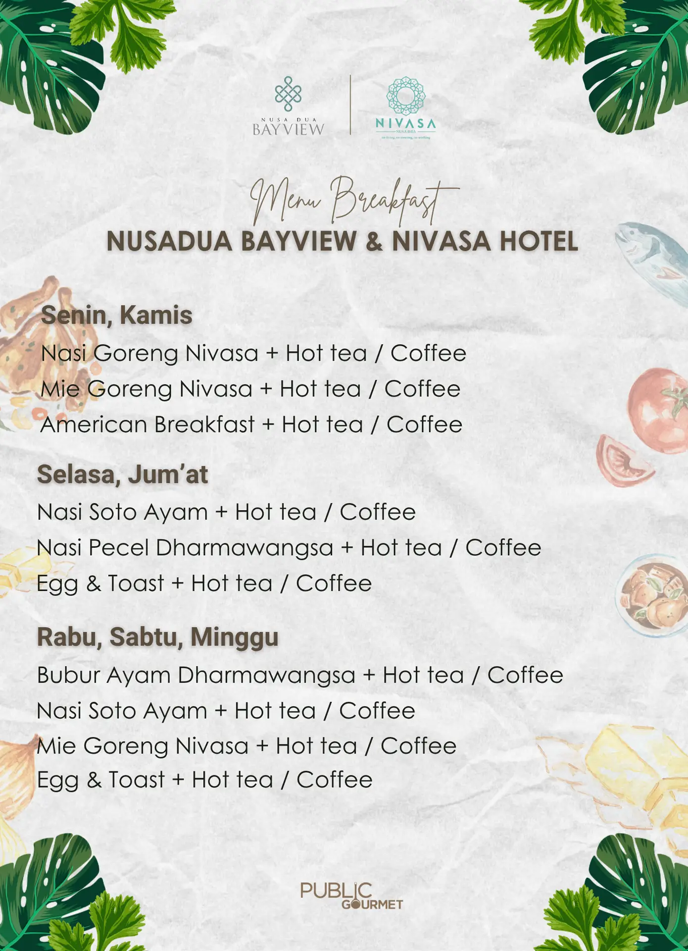 Indulge in culinary excellence at Public Gourmet, your all-day dining destination nestled in the serene hillside of Jl. Dharmawangsa No. 19, Nusa Dua, Bali. With panoramic views over Nusa Dua Bay, our restaurant blends a chic ambiance with warm hospitality, creating the perfect setting for every moment — from relaxed breakfasts to elegant dinners.